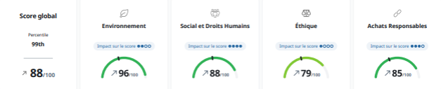 Créée en 2007, EcoVadis est une plateforme qui analyse et évalue la performance RSE des entreprises à travers quatre grands piliers :